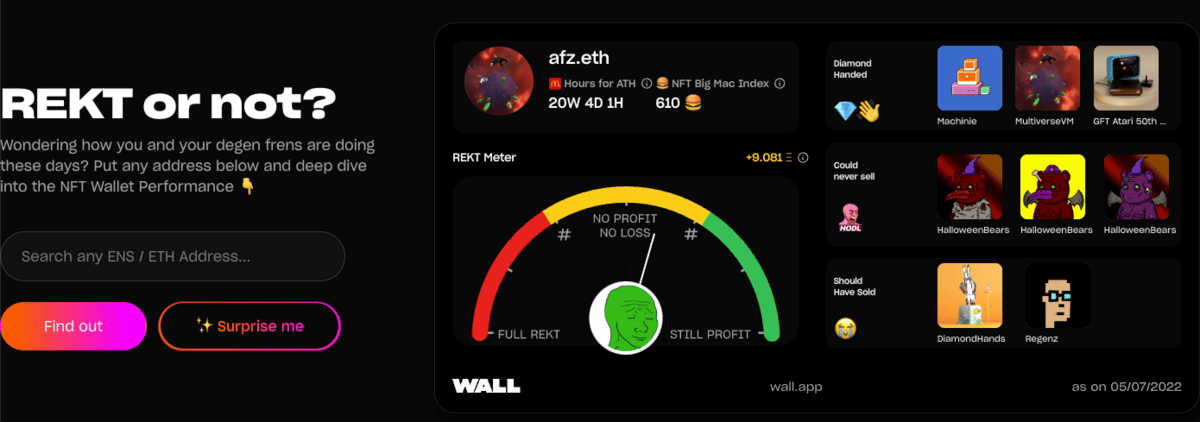 Why would you not want to spy on your mates' trading performance? REKT Wall allows you to get a deep dive into their wallet performance. Whatsapp group ammo.