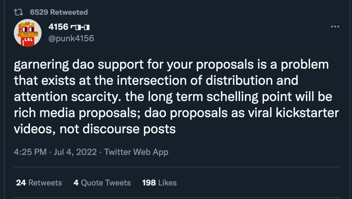 How can you cut through the noise within a DAO to get your proposal through? Will we see viral marketing techniques come into play in the future?