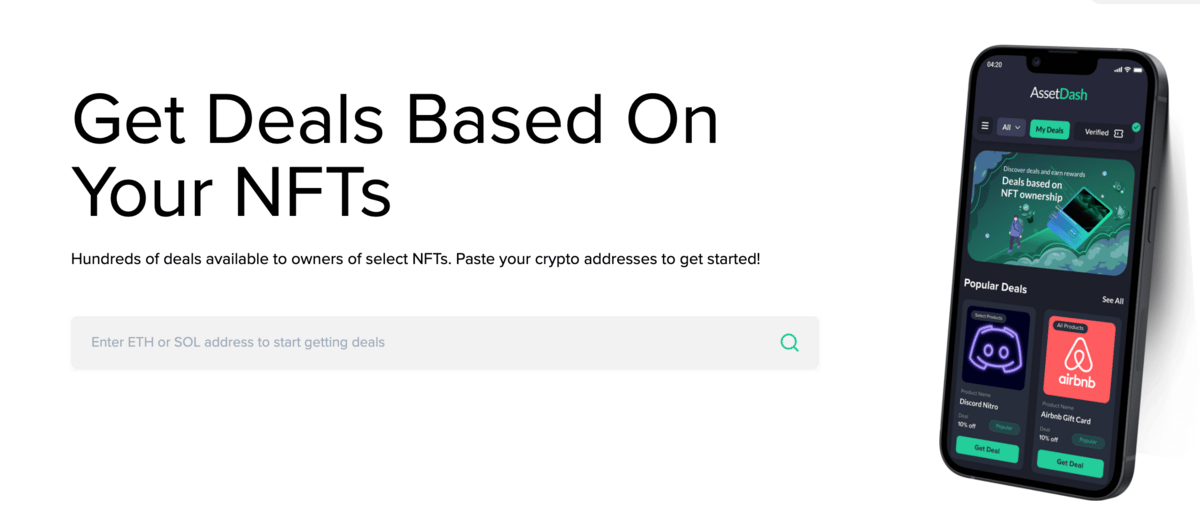 AssetDash Deals is a reward program for NFTs, where you qualify for various perks based on your holdings.